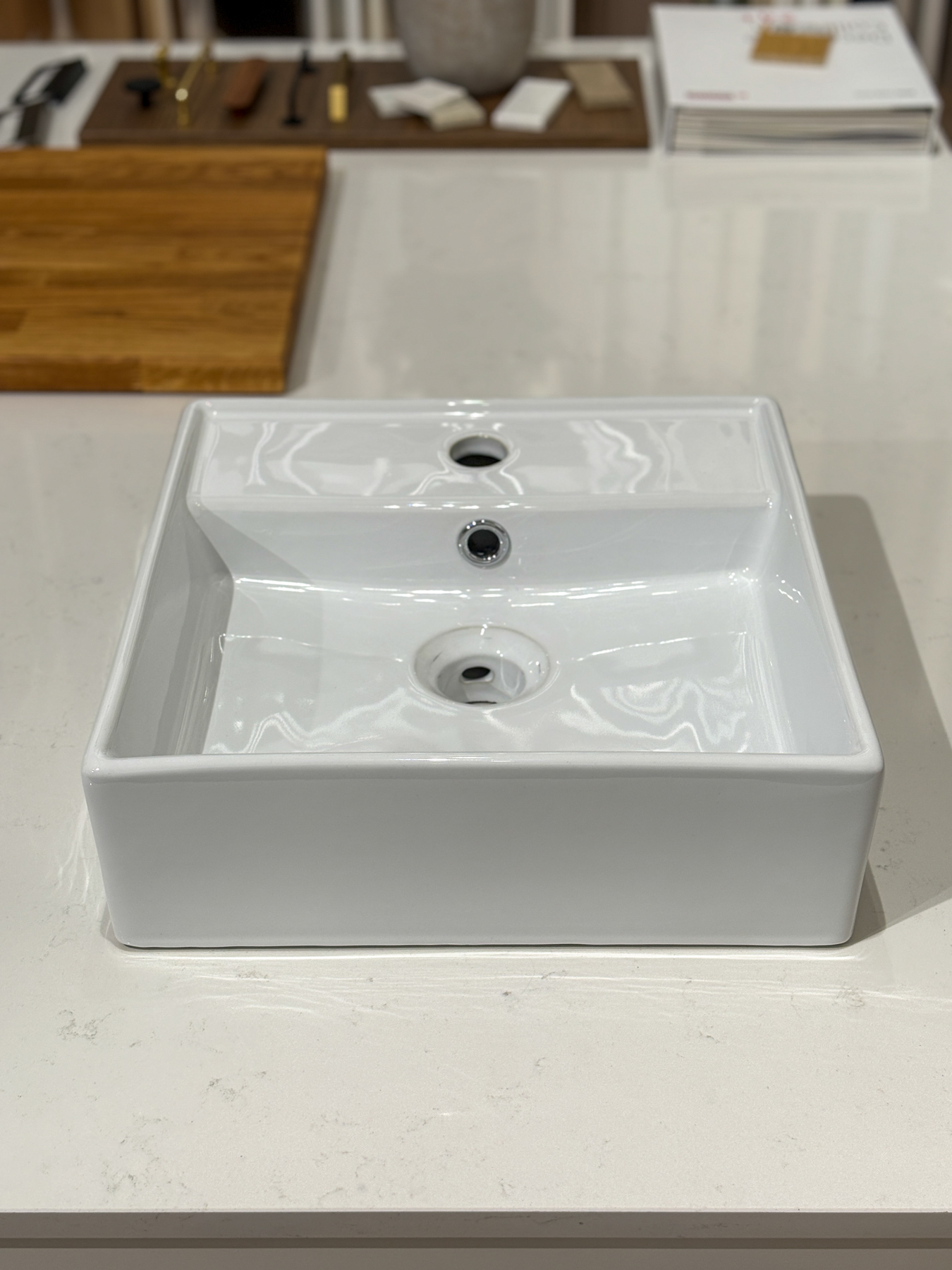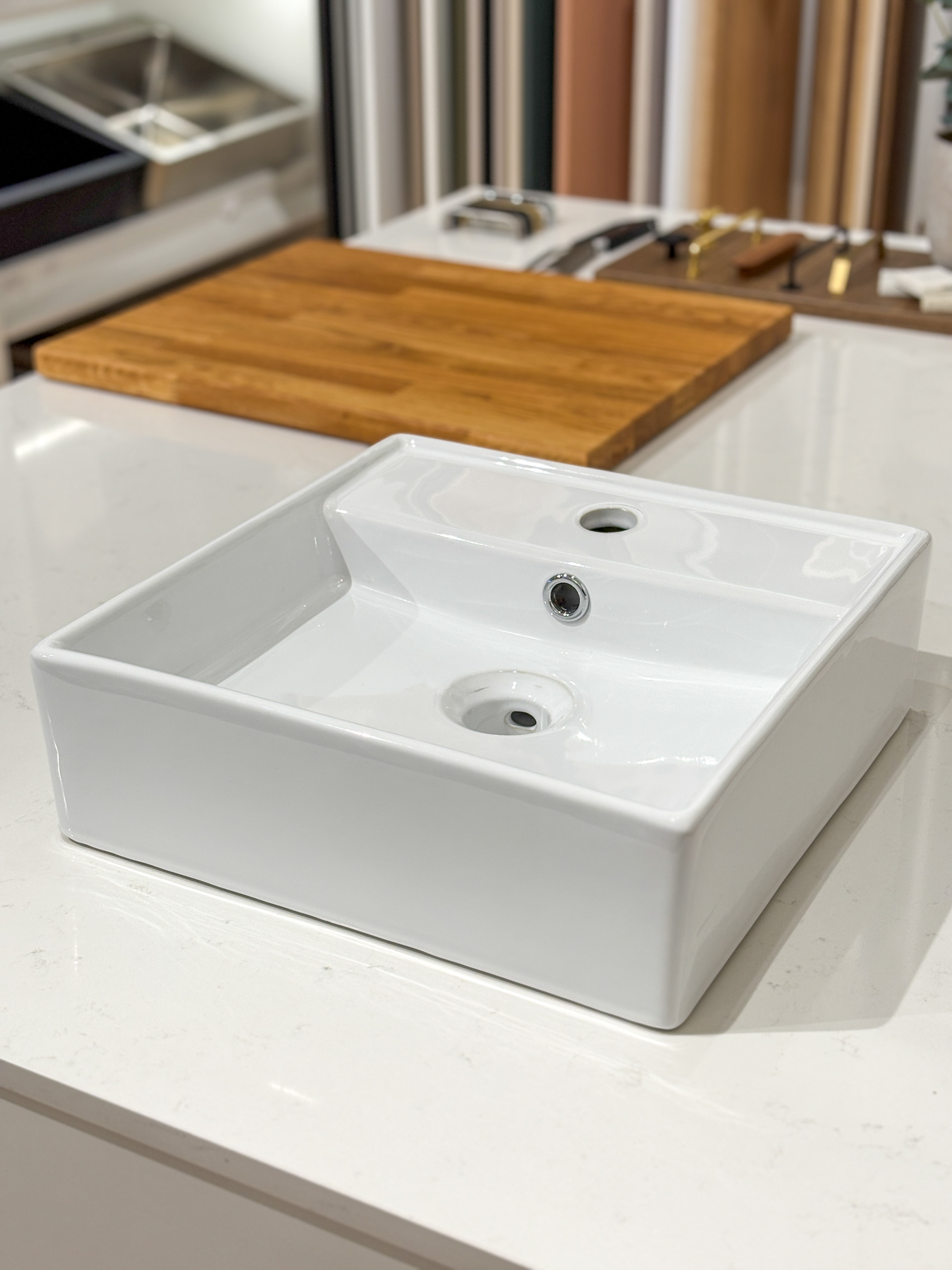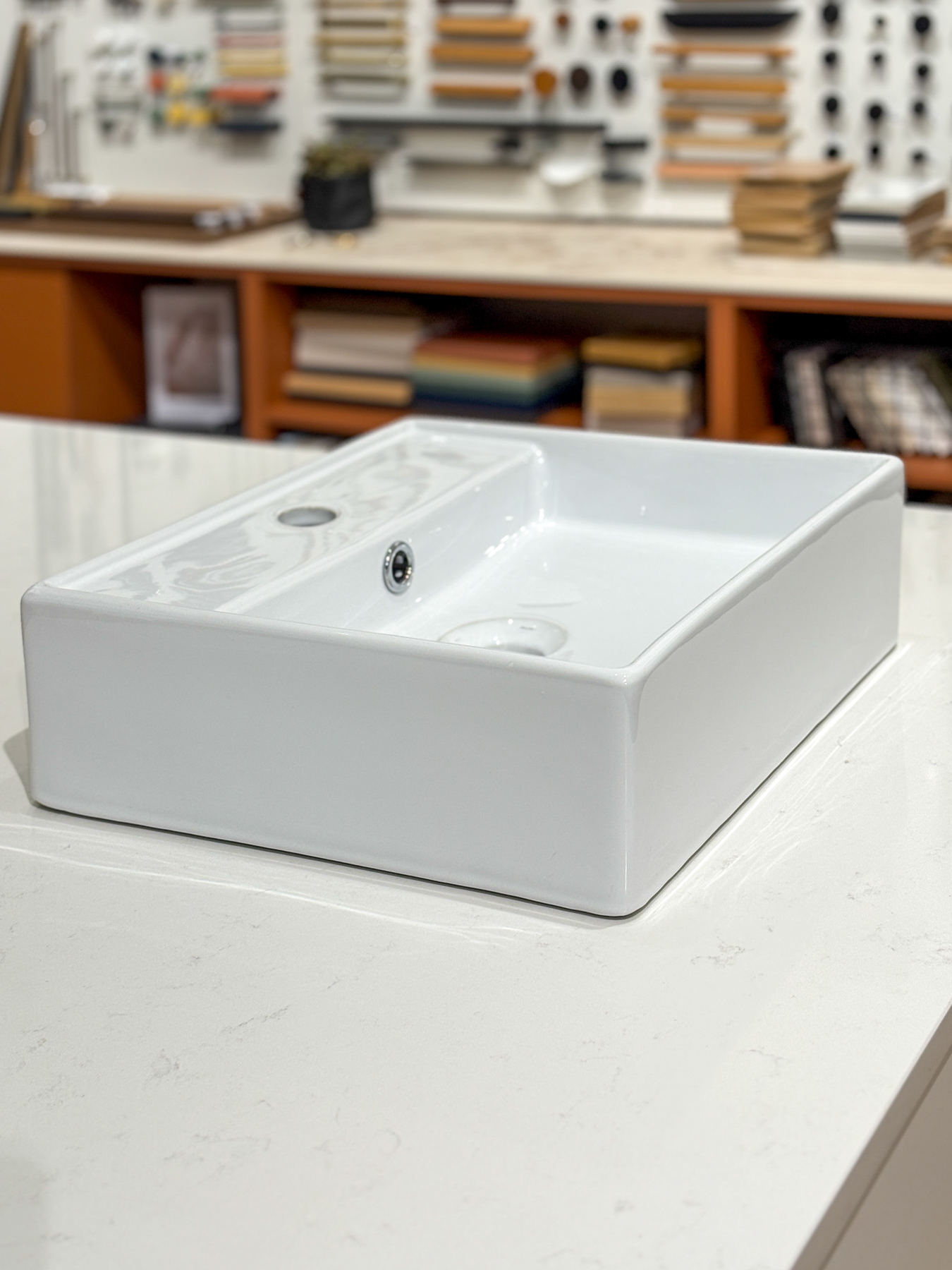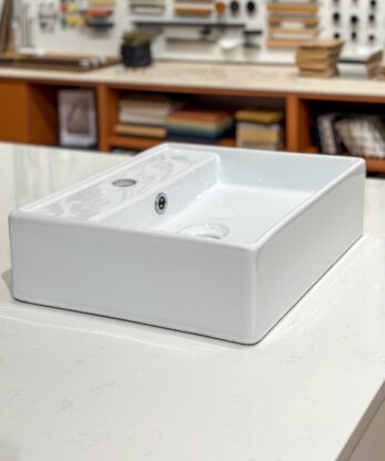 Poistuva posliininen malja-allas.